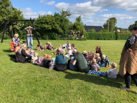 12 naturdagplejer ud af 16 deltog i formiddagens arrangement med deres dagplejebørn. Humøret var højt og stemningen god.